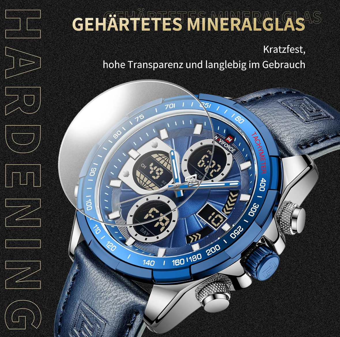 Reloj NAVIFORCE 9197 Hombre Analógico-Digital de Lujo | Acero Inoxidable, Cuero, Resistente al Agua 3ATM