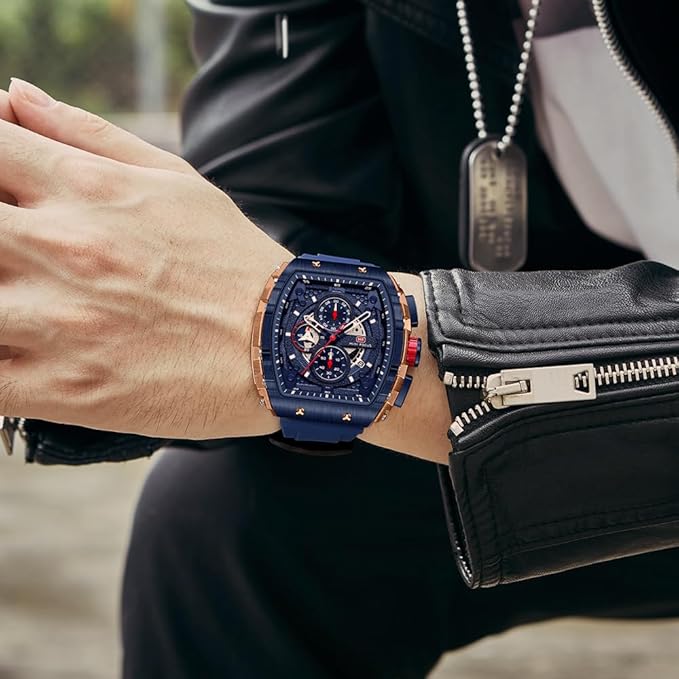 Cuenta con una caja de aleación resistente de 40 mm, un tamaño perfecto para lucir en la muñeca sin resultar excesivo. La correa de cuero de alta calidad ofrece comodidad, durabilidad y un ajuste seguro gracias a su cierre oculto con botón de empuje.
