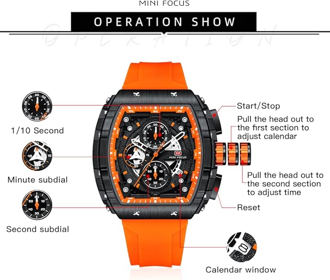 El Reloj MINIFOCUS MF0399G en su versión con correa de silicona naranja ofrece un estilo audaz y moderno, ideal para hombres que buscan destacar. Su diseño combina perfectamente el toque deportivo.